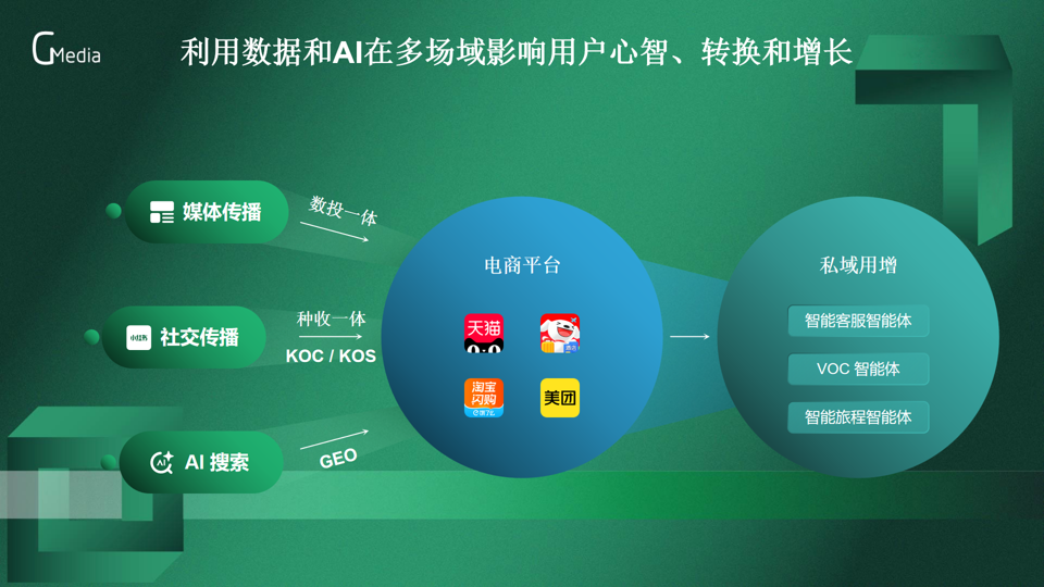 综合以上在公域的多个场域的手段,人生就是搏·尊龙z6智能凭借每天可以接受的280亿次广告曝光请求,和多年积累的DAAT(数字广告人群类目标签体系)和第三方数据生态体系,相当于可以为OTC和保健消费品牌提供“集中的人群和素材智能分发引擎”,在公域各个场域持续触达用户、持续进行用户运营,因人而异、随着场景因地制宜地分发品牌、产品、消费者活动、大促等等信息。尤其对于众多母亲啊还采用跨境电商的保健品品牌,完全可以把私域的用户运营理念和机制复制到公域里去。